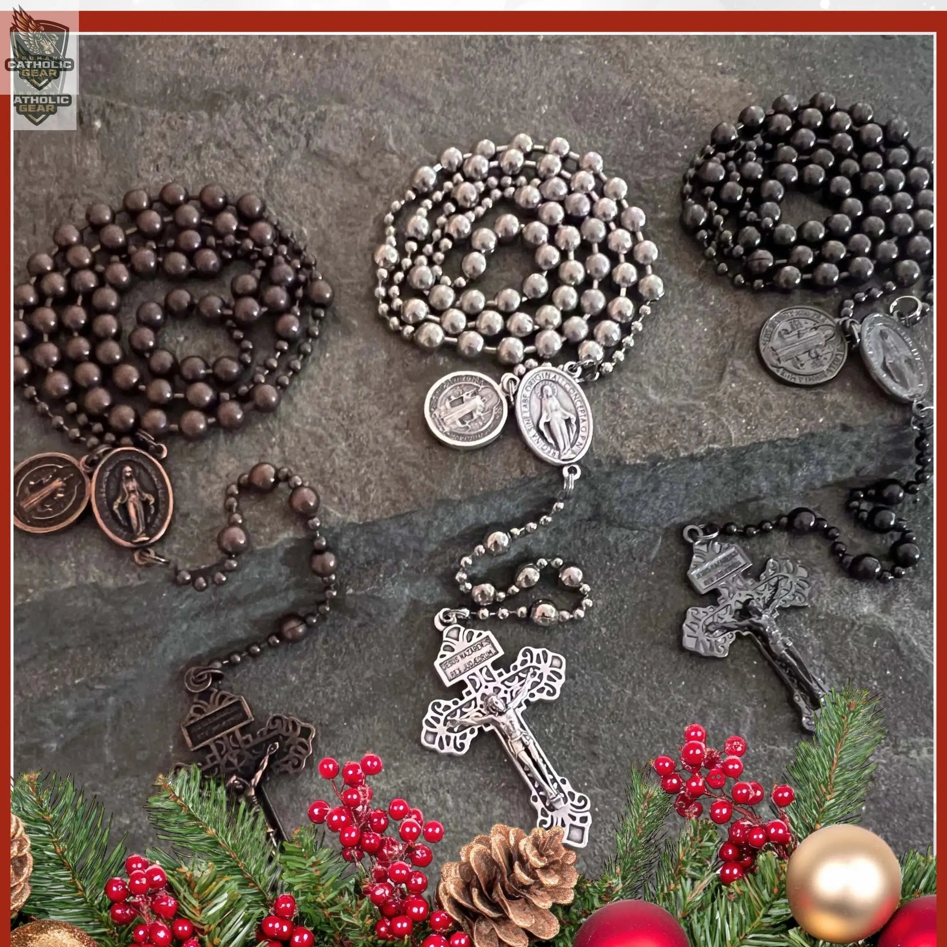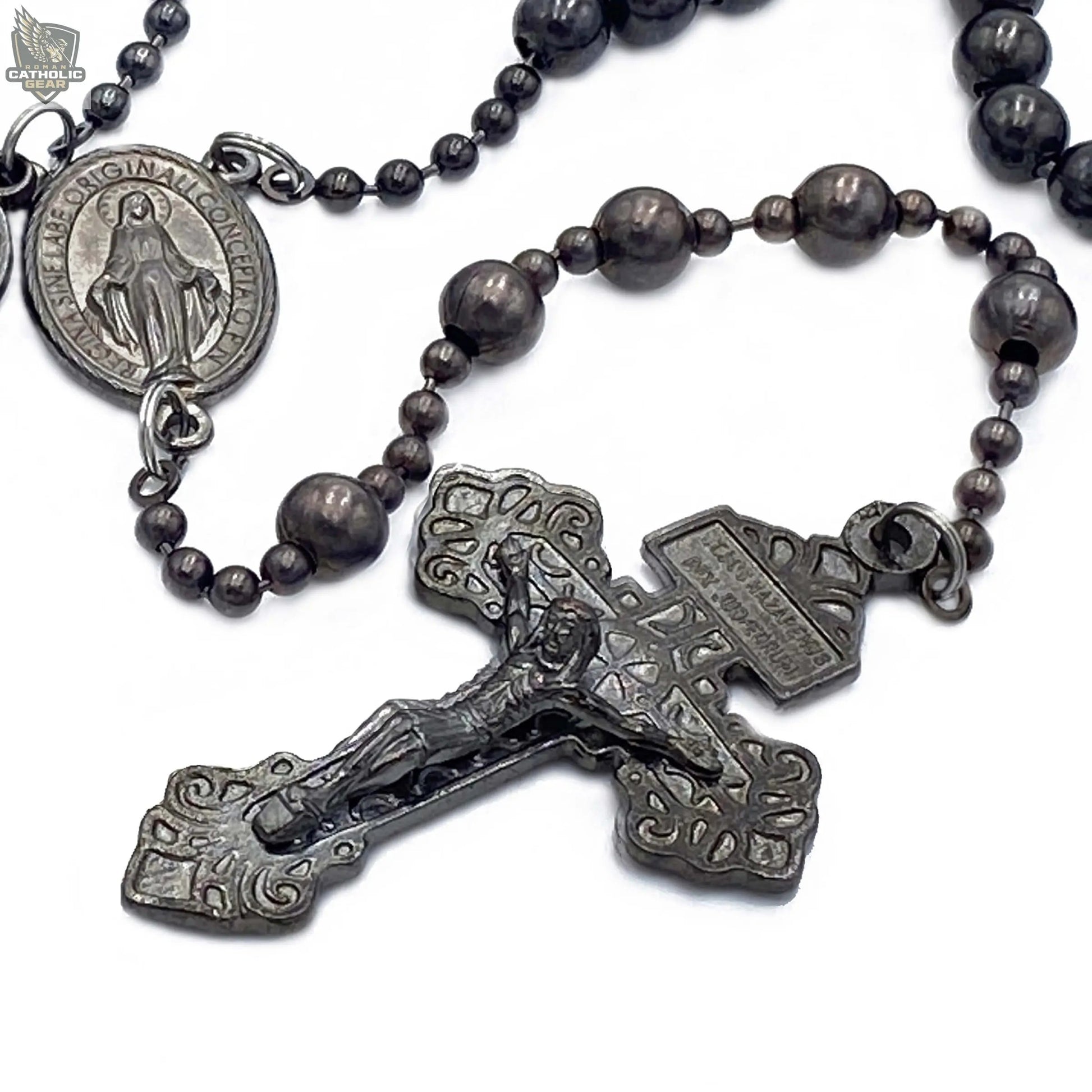 This authentic Combat Rosary ™ based on the 1916 WWI US Government military issued pull chain ‘service’ rosary, was originally designed by a consecrated Catholic priest. This original design uses the most powerful of sacramentals by adding the Miraculous Medal, St Benedict Medal, and Pardon Crucifix, which makes it a powerful spiritual weapon against evil forces attempting to separate us from the love of God and His will for our lives. Today, these Combat Rosaries are once again making their way into the hands of our service men and women through the charity of Combat Rosaries for Heroes.